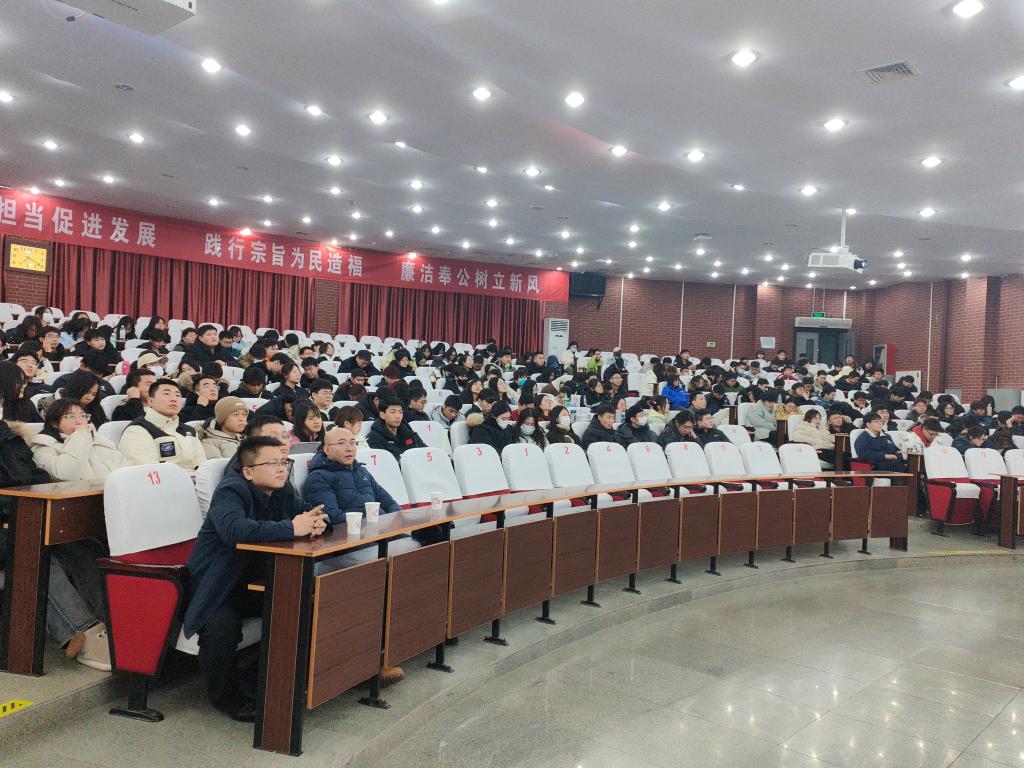 为深化产教融合,校企合作,拓宽学生学术视野,掌握最新信息动态,了解所在学科领域的前沿知识,2024年1月2日,由物理与电子信息工程学院主办的“AIGC专题”讲座在泉山校区图书馆报告厅举行。网易有道信息技术(北京)有限公司产教融合中心人工智能技术专家路东硕作了题为《大语言模型与AI绘画的魅力》的报告。报告由物理与电子信息工程学院郑晓霞老师主持,学院电子信息科学与技术专业300余师生聆听报告。