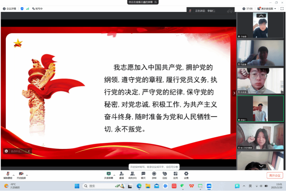 为了深入学习贯彻习近平总书记关于健全全面从严治党体系的重要讲话精神,进一步提升党员干部的政治素养和责任意识,推动全面从严治党向纵深发展。2025年2月20日15:00,物理与电子信息工程学院学生党支部开展“严守纪律规矩、推进廉洁自律--学习研讨‘习近平:健全全面从严治党体系’”线上主题党日活动。