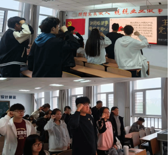 活动第二项:重温入党誓词。全体党员面向党旗,举起右拳,庄严宣誓。铿锵有力的誓言,表达了党员们对党的忠诚和为共产主义事业奋斗终生的决心。