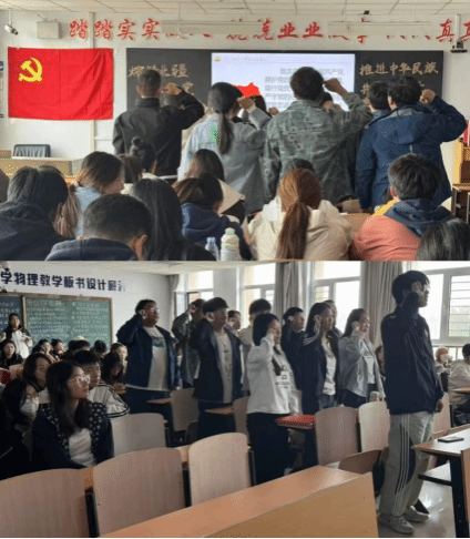 由学生党支部第一党小组组长张泽童带领宣誓。全体党员面向党旗,举起右拳,庄严宣誓。铿锵有力的誓言,表达了党员们对党的忠诚和为共产主义事业奋斗终生的决心。