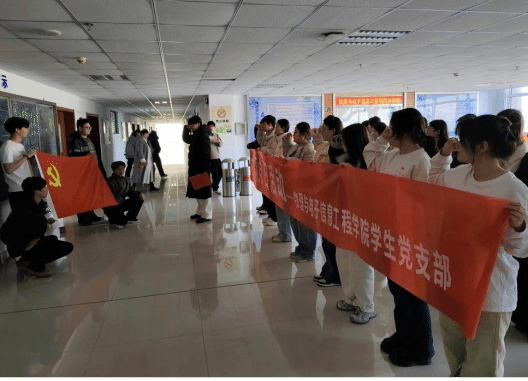 活动第一项:重温入党誓词。全体党员面向党旗,举起右拳,庄严宣誓。铿锵有力的誓言,表达了党员们对党的忠诚和为共产主义事业奋斗终生的决心。