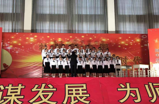 9月24日下午,beat365正版唯一官方网站附中滨河校区体育馆内歌声飞扬,高二、高三年级的师生们,在新中国成立70周年前夕,为祖国唱响赞歌。