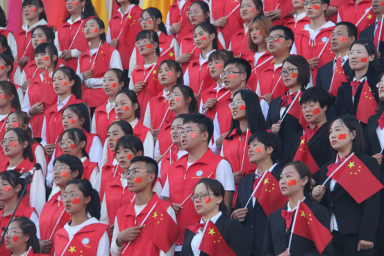 在嘹亮的国歌声中,比赛拉开了帷幕。《打靶归来》、《中国,中国,鲜红的太阳永不落》、《一二三四歌》、《没有共产党就没有新中国》等革命歌曲展现了建设新中国艰苦奋斗的伟大历程;《社会主义好》、《咱们工人有力量》等歌曲体现出中国人民建设小康社会,共赴美好生活的信心;《光荣与梦想》、《走向复兴》、《我们走在大路上》、《中国之梦》等歌曲展现了改革开放以来中国人民献身中国特色社会主义伟大事业,携手阔步走进新时代的壮丽篇章;《爱我中华》、《我和我的祖国》、《歌唱祖国》等歌曲展现了中华民族团结一心、自强不息的民族精神与爱国主义精神。赛场上,各学院和职能部门代表队穿着整齐,热情高涨、慷慨激昂,用铿锵有力的歌声告白伟大的祖国;观众席里,同学们伴着歌声,挥动着国旗将现场氛围推向高潮。