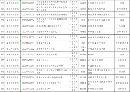 根据《关于报送2020年自治区级和国家级大学生创新创业训练计划立项项目的通知》(内教高函﹝2020﹞24号)要求,beat365官网上报了2020年大学生创新创业项目,经审核有16项入选内蒙古自治区教育厅2020年自治区级大学生创新创业训练计划项目。