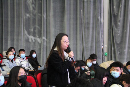 专题宣讲结束后,李树林与现场师生进行互动宣讲。经济与管理学院、文学院、计算机学院师生分别就“新形势下如何处理好发展与安全的关系。”“新时代青年大学生在‘十四五’期间有什么样的成长成才机遇?”“教育强国有什么规划和政策?”等问题进行咨询。李树林就师生所提问题分别从不同方面作出详细解答。
