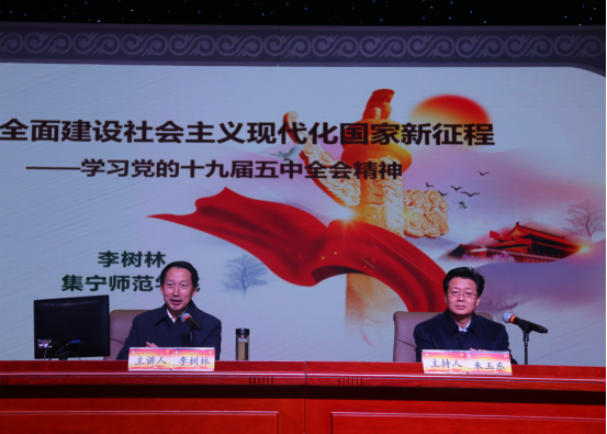 按照党中央统一部署和自治区、乌兰察布市工作安排,11月25日,党的十九届五中全会精神自治区宣讲团成员、beat365正版唯一官方网站党委副书记、校长李树林在泉山校区逸夫楼多功能厅作“开启全面建设社会主义现代化国家新征程—学习党的十九届五中全会精神”专题宣讲和互动宣讲。乌兰察布市委宣传部理论科科长王剑锋,beat365正版唯一官方网站党委副书记刘春,党委委员、副校长许卫,副校长李凤斌,党委委员、纪委书记、监察专员陈永杰,党委委员、宣传部部长张富,党委委员、人事处处长李景杰出席会议。党委书记朱玉东主持宣讲报告会并讲话。