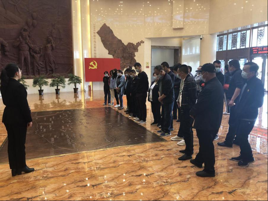 全体党员及积极分子在工作人员的指引下,文明有序地进入到馆内,面对鲜红的党旗重温了入党誓词。