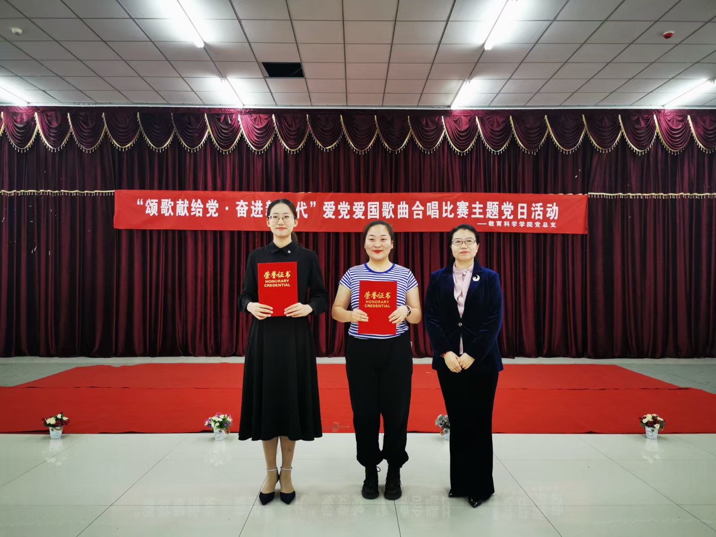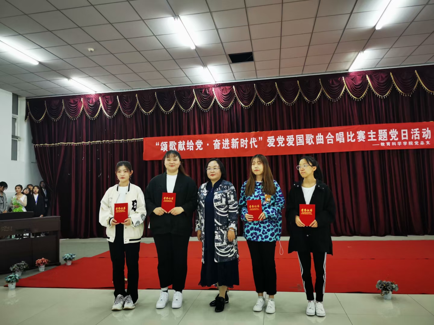 beat365正版唯一官方网站教育科学学院党总支举办“颂歌献给党·奋进新时代”爱党爱国歌曲合唱比赛主题党日活动