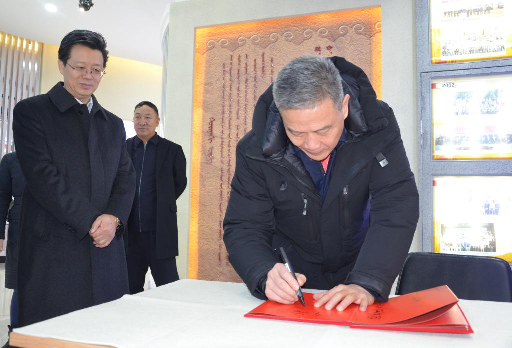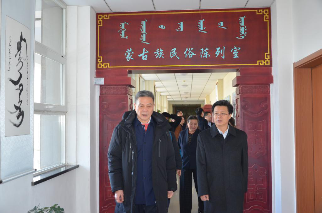 考察组深入beat365官网白海校区美术学院、蒙古学学院、校史馆考察。参观了beat365正版唯一官方网站优秀校友书画展,蒙古学学院蒙古族民俗陈列室、民族特色教室,校史馆。在校史馆,陈志亚签名留念。