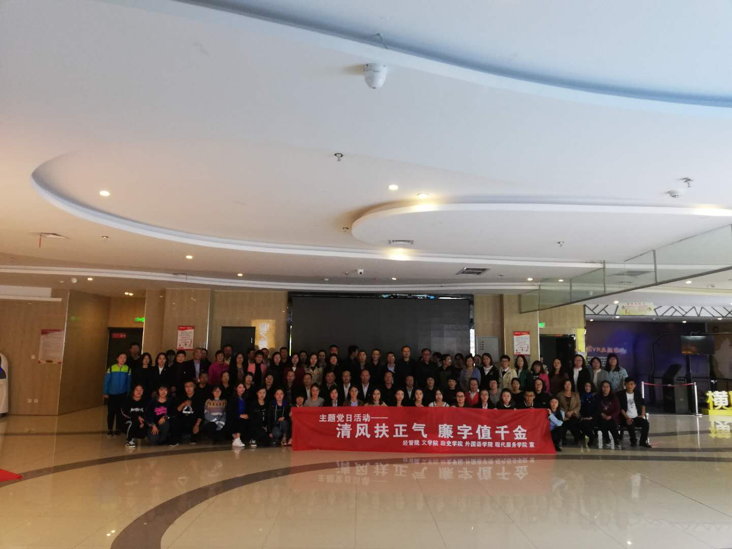 2018年是贯彻党的十九大精神开局之年,是改革开放40周年,是决胜全面建成小康社会关键的一年,为全面贯彻落实党中央关于从严治党的要求,做好党风廉政建设工作,beat365官网经济与管理学院、文学院、现代服务学院、外国语学院、政治与历史学院、纪检委、科研设备处、工会全体党员于9月20日下午在乌兰察布市维多利电影城开展了“清风扶正气,廉字值千金”主题党日活动。