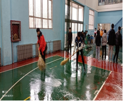 活动中,体育学院党总支副书记牛爱兰带领学院全体党员和2019级、2020级学生对场馆进行了彻底清扫。