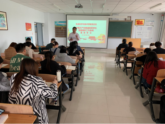 为了深入贯彻习近平新时代中国特色社会主义思想,贯彻落实新时代党的建设总要求和新时代党的组织路线,坚持和加强党对普通高等学校的全面领导,加强和改进高校党的建设,扎根中国大地办好中国特色社会主义大学,根据《中国共产党章程》和有关法律,制定《中国共产党普通高等学校基层组织工作条例》。根据beat365正版唯一官方网站党委要求部署,5月13日,生命科学与技术学院党总支组织全体党员学习了《中国共产党普通高等学校基层组织工作条例》。本次学习活动由生命科学与技术学院党总支副书记孙登高主持并领学,生命科学与技术学院党总支副书记、院长任琴及全体师生党员参加了学习活动。