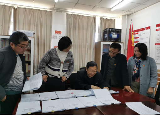 美术与设计学院党总支书记南国栋就“五强”党支部建设工作推进情况做了简要介绍,随后,梁政仔细查看了党支部支部大会记录,个人学习笔记、活动记录本等材料,检查了美院党建活动室、党建宣传栏、党务公开栏等建设情况。