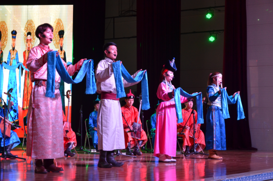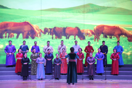 教师合唱迎宾曲《美丽的草原我的家》以悠扬动听的旋律展现了草原人民的热情以及对远方客人欢迎。马头琴合奏《黑木日》以蒙古族长调、呼麦和马头琴演奏的动人婉转旋律为嘉宾献上满含民族特色的视听盛宴。