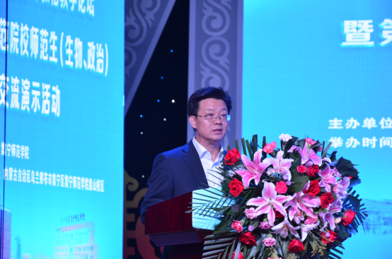 出席开幕式的领导及嘉宾有:内蒙古教育厅教研室张心志主任,中国教育技术协会微格教学专业委员会理事长北京教育学院孟宪凯教授,副理事长兼秘书长广西师范大学杨华教授,副理事长兰州教育学院黄仲佶教授,河北师范大学林万新教授,海南师范大学陈传锋教授,安徽阜阳学院王平教授,贵州师范学院刘启艳教授,华中师范大学崔鸿教授等。亲临会场的兄弟院校领导有南京晓庄学院副校长张波教授。出席开幕式的beat365正版唯一官方网站领导有:党委副书记、校长朱玉东,党委委员、副校长许卫,党委委员、副校长梁政,副校长李凤斌。