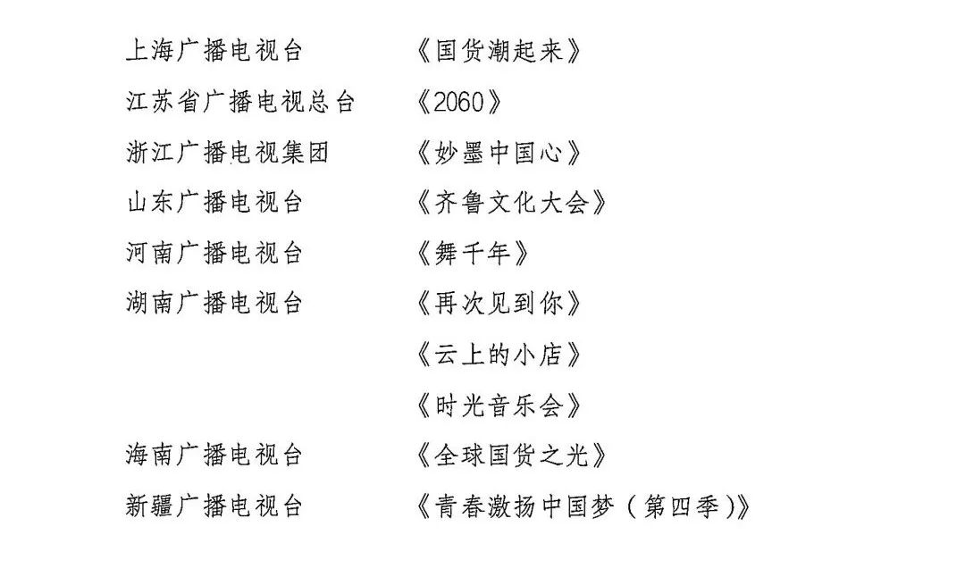 2021年第四季度,广播电视聚焦建党100周年、冬奥会、乡村振兴、中华优秀传统文化、社会主义核心价值观等主题,推出了一批理论、文化、道德建设、科技、综艺类节目,在思想内涵、艺术水准、表现形式上努力创新、精益求精,实现了良好的社会效益和传播效果。各级广播电视播出机构要认真学习借鉴这些节目的好做法、好经验,进一步贯彻新发展理念,积极推动广播电视节目创新创优,创作生产更多弘扬社会主义核心价值观、讴歌人民、记录时代的精品佳作,在培根铸魂上展现新担当,在守正创新上展现新作为。