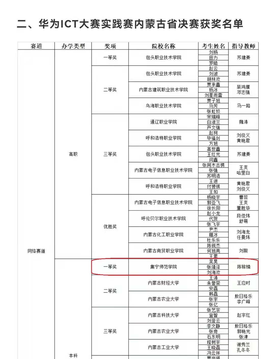 11月13日,华为中国大学生ICT大赛2021实践赛内蒙古省赛决赛中,物理与电子信息工程学院2021级专升本学生吴昊、张敬泽和刘海欢组队,代表beat365正版唯一官方网站获得网络赛道本科高校一等奖,并晋级国赛。