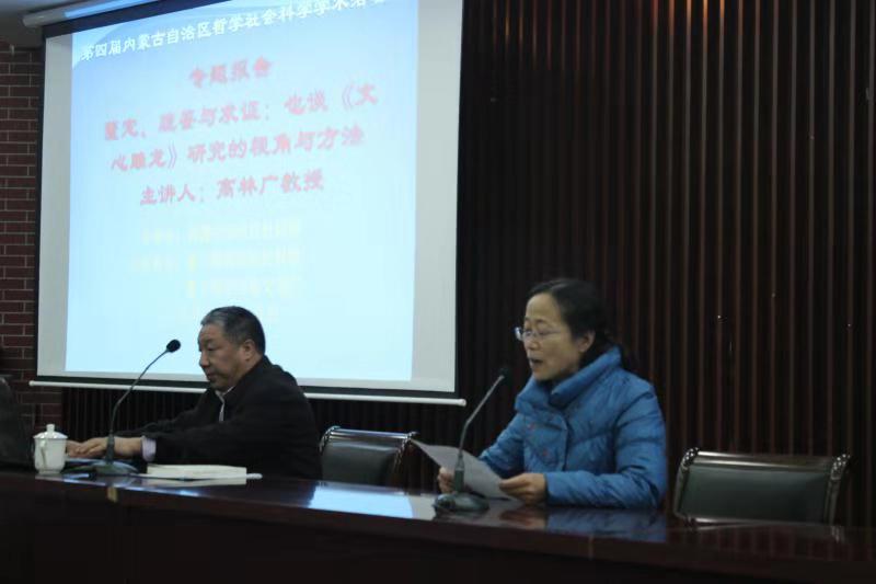 11月19日,第四届内蒙古自治区哲学社会科学学术活动月专题报告在beat365正版唯一官方网站图书馆报告厅举办,由内蒙古自治区第七届哲学社会科学优秀成果政府奖一等奖获得者高林广教授主讲,题为“鉴定、疏鉴与求证:也谈《文心雕龙》研究的视角与方法”。