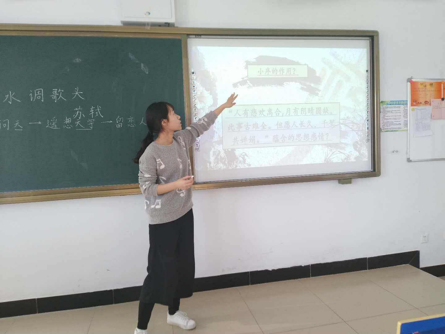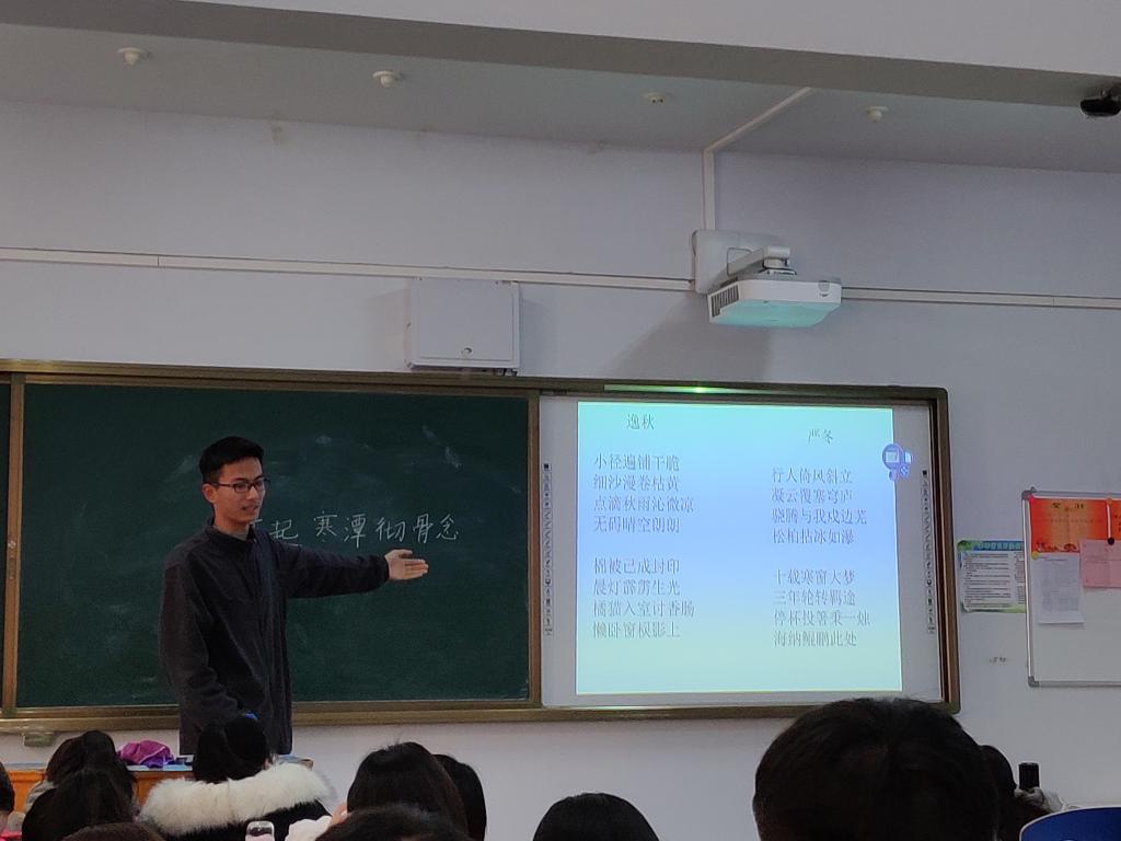 有的同学讲解时动作生动自然、从容流畅,有的同学所作填词作文采斐然、清新奇巧,有的同学板书严谨、内容充实,有的同学语言幽默,动作诙谐,逗得大伙在课堂上笑声不断。大家纷纷将自己的优势显露,在讲堂上大展拳脚。
