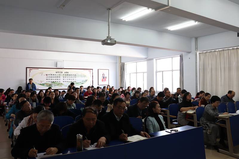 刘春副书记借用《管子》中“一年之计,莫如树谷;十年之计,莫如树木;终身之计,莫如树人。”这句话引出本次讲座的主题,他指出新时代教师要有理想信念,有道德情操,有扎实知识,有仁爱之心。要做学生锤炼品格的引路人,做学生学习知识的引路人,做学生创新思维的引路人,做学生奉献祖国的引路人。