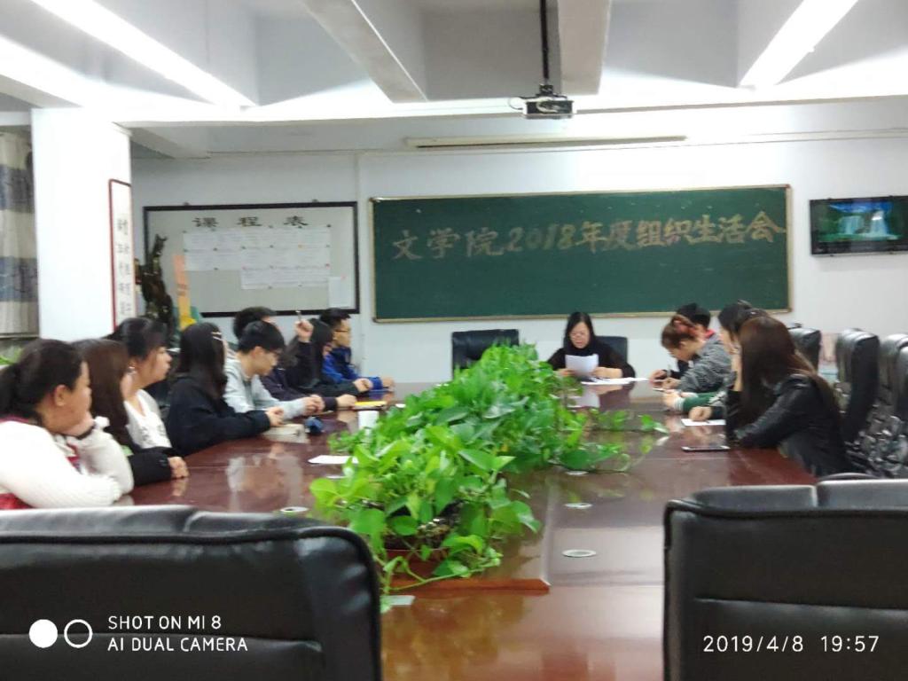 按照《中共乌兰察布市委办公厅印发<关于在全市基层党组织和全体党员中深入开展评星定级活动的实施意见>的通知》(乌党办发〔2016〕24号)的要求,4月7日、4月8日beat365正版唯一官方网站文学院教工党支部、学生党支部分别召开了2018年度基层党组织组织生活会,开展了民主评议党员工作。文学院在职教师党员、学生党员参加活动,文学院党总支书记张一弘主持会议。