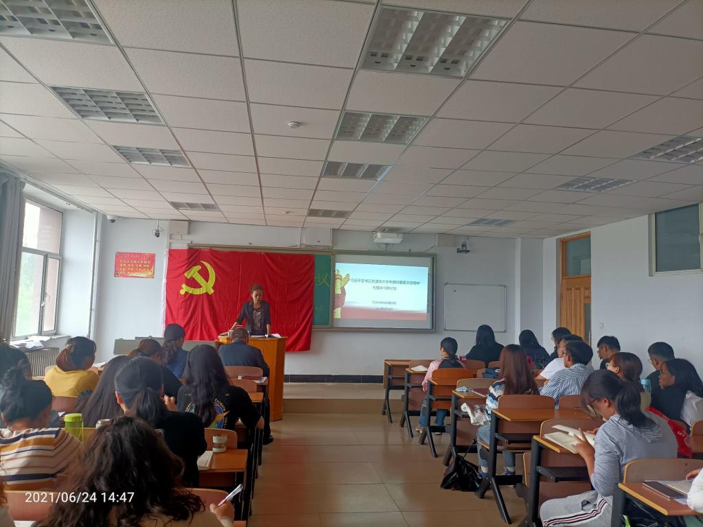 文学与新闻传播学院教师党员郝青山领学了习近平总书记在清华大学考察时重要讲话精神的内容。