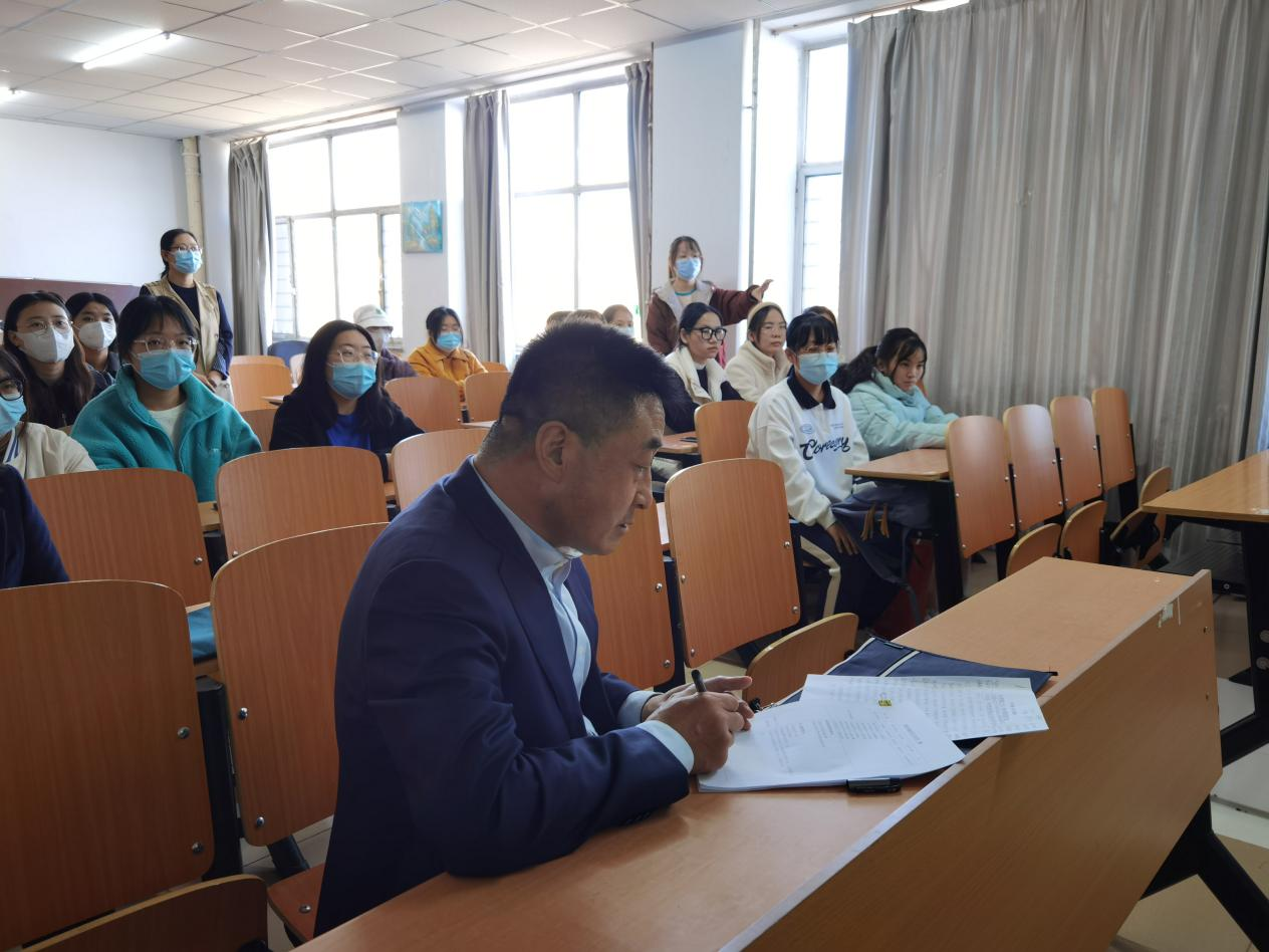 为深入学习宣传贯彻党的二十大精神,引领青年学生坚定理想信念,奋力开创新学期的崭新局面,按照学校要求,3月2日下午文学与新闻传播学院组织各班开展“青春践行二十大”主题班会。beat365正版唯一官方网站校长刘春走进2021级汉语言文学2班,带来一堂令人振奋、充满正能量的“校长班会课”,激励同学们心怀“国之大者”,勇担青年责任。
