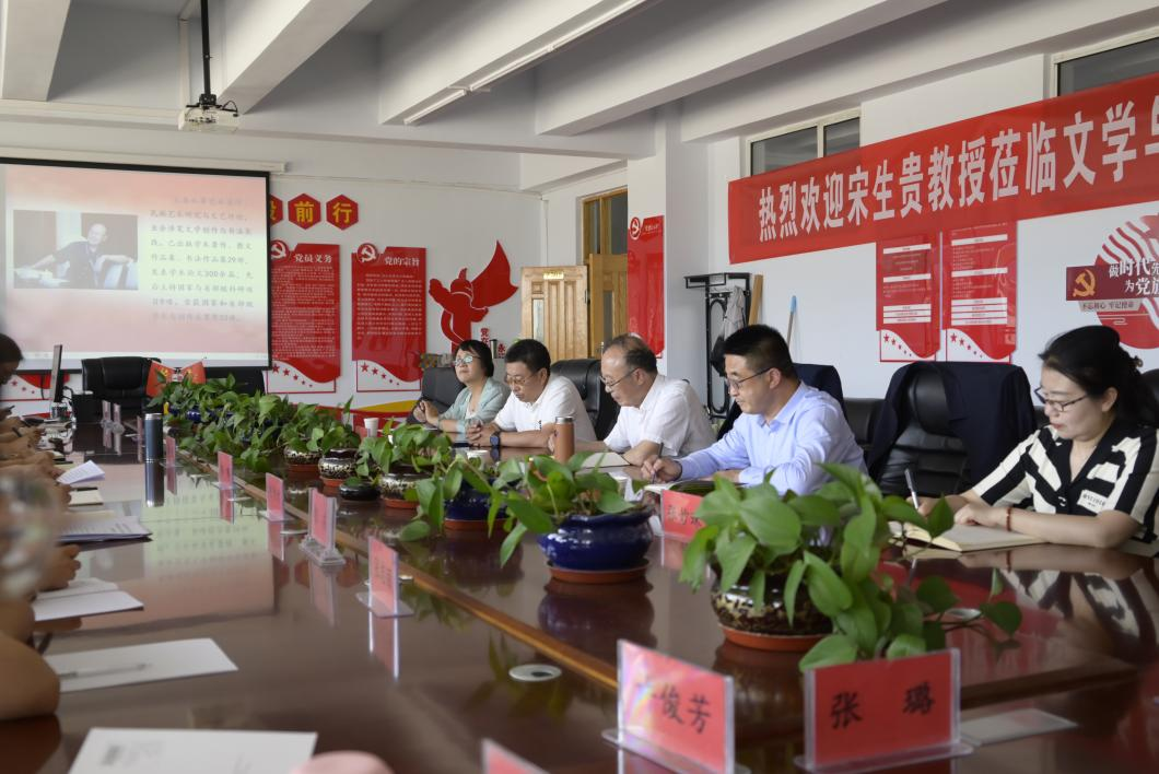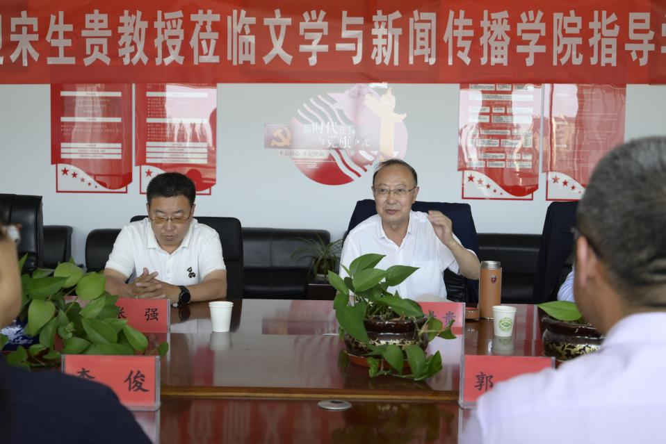 6月21日,文学与新闻传播学院邀请内蒙古艺术学院二级教授,内蒙古大学博士研究生导师宋生贵教授到校指导学科建设工作,beat365正版唯一官方网站校长刘春陪同考察,文学与新闻传播学院院长郭鹏,全体教师出席学科建设工作座谈会。
