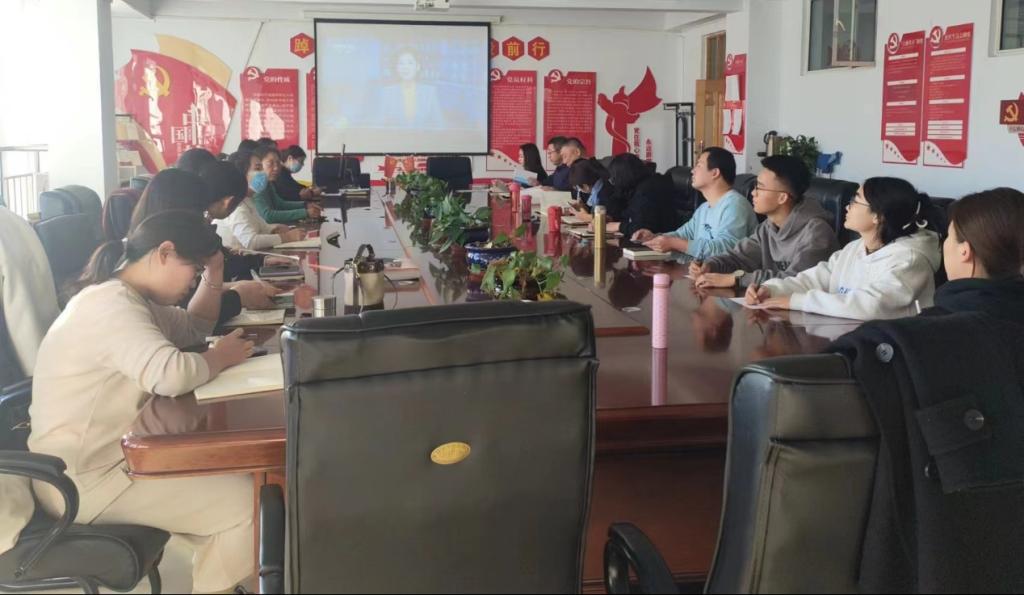师生党员共同观看全国优秀教师代表座谈会视频。