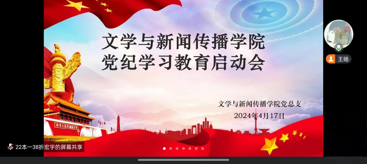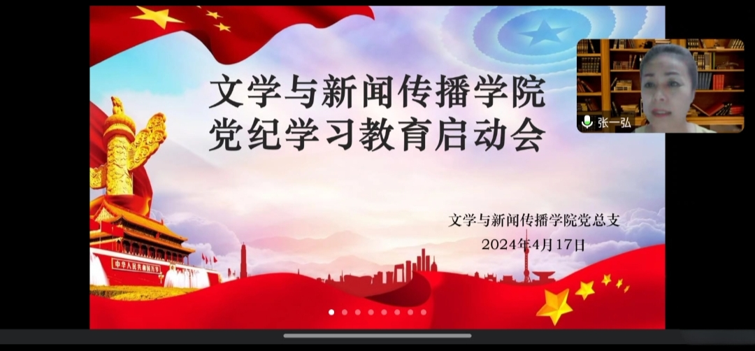 4月17日晚,文学与新闻传播学院开展党纪学习教育启动会,文学与新闻传播学院党总支书记张一弘主持会议,全体师生党员参加会议。