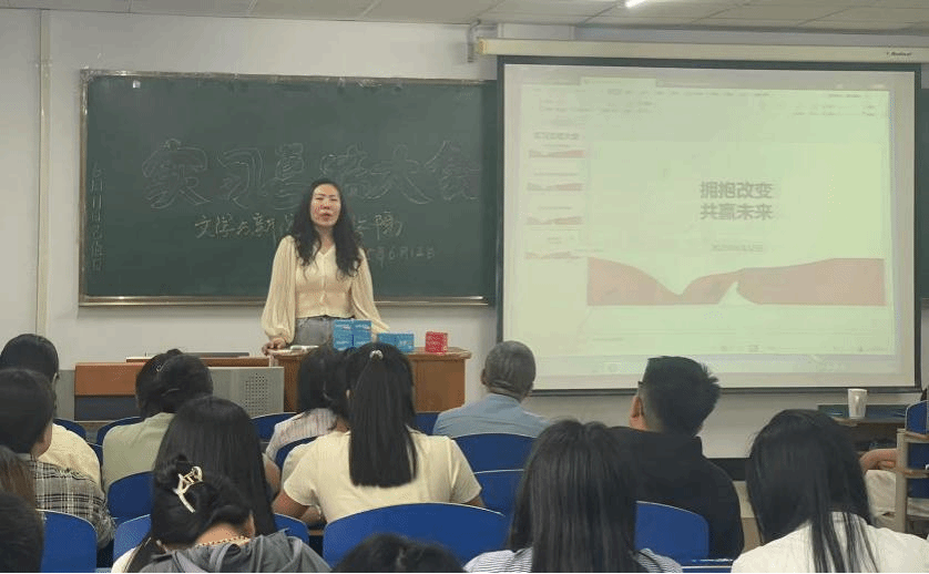 2025年6月12日下午,文学与新闻传播学院召开2025年度教育实习总结大会。实践教研室主任银燕主持会议,学院全体教师和2021级毕业生参加大会。