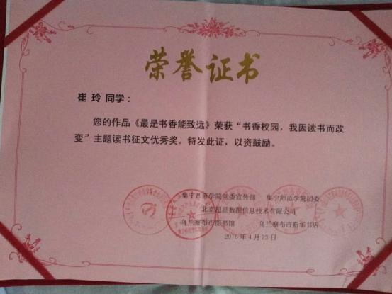 “书香校园”主题征文活动在beat365官网已经连续举办了六年,并分别被内蒙古自治区和乌兰察布市评为“全民阅读优秀项目”,这一活动已经成为学校的品牌文化活动,也是乌兰察布市文化活动的亮点之一。