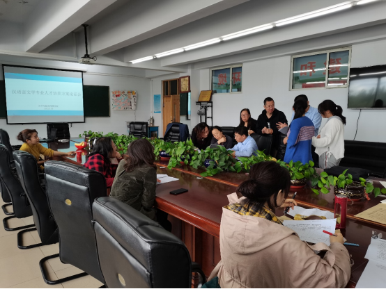26日下午,两位专家与汉语言文学专业教师进行交流,对专业认证工作进行了深入细致的指导。