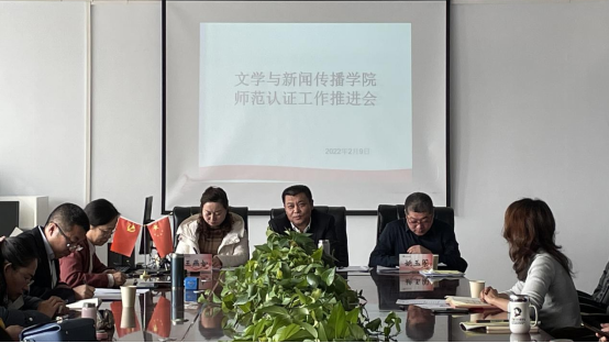 为了更好开展师范类专业认证各项工作,加强汉语言文学专业建设,提升人才培养质量,加快推进专家组进校前各项准备工作。2月9日上午,在教学主楼309会议室召开文学与新闻传播学院师范认证工作推进会。校党委委员、副校长李景杰,教务处处长姚玉阁,音乐与舞蹈学院院长王燕如,文学与新闻传播学院党总支书记张一弘、院长李俊、副院长郭鹏及部分教师参加会议。