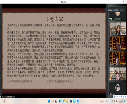 活动前全体成员确定分享书目、分享题目、主要内容,制作课件并整理思路同时在微信上抽签确定汇报顺序,保证公平公正。活动中成员依照抽签顺序并通过讲述和放映课件的方式聊书的内容谈自己的阅读感受或思考。所有同学汇报完之后,老师进行整体点评。