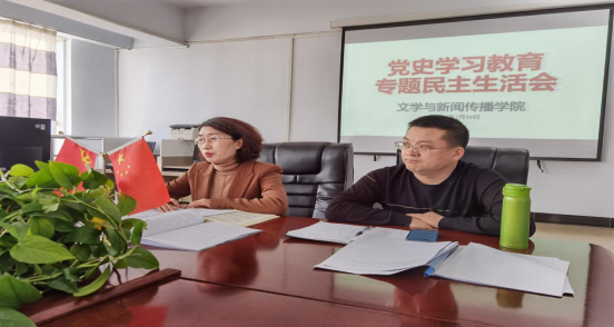 文学与新闻传播学院于1月16日召开党史学习教育专题民主生活会。党史学习教育第一巡回指导组组长、校统战部部长张秀文、副组长、纪委办公室副主任唐学明出席生活会,文学与新闻传播学院中心组全体成员参加会议。会议由文学与新闻传播学院党总支书记张一弘主持。