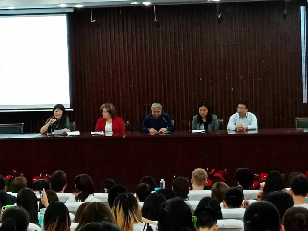 在实践周活动开始前,教务处、现代服务学院、外国语学院联合在图书馆报告厅举行了外教实践周活动开幕式,教务处处长戈华、现代服务学院党总支书记黄中、外教带队教师Christie出席开幕式并讲话。外教团队所有成员、外国语学院和现代服务学院部分学生参加了开幕式。开幕式由外国语学院闫晓云主持。