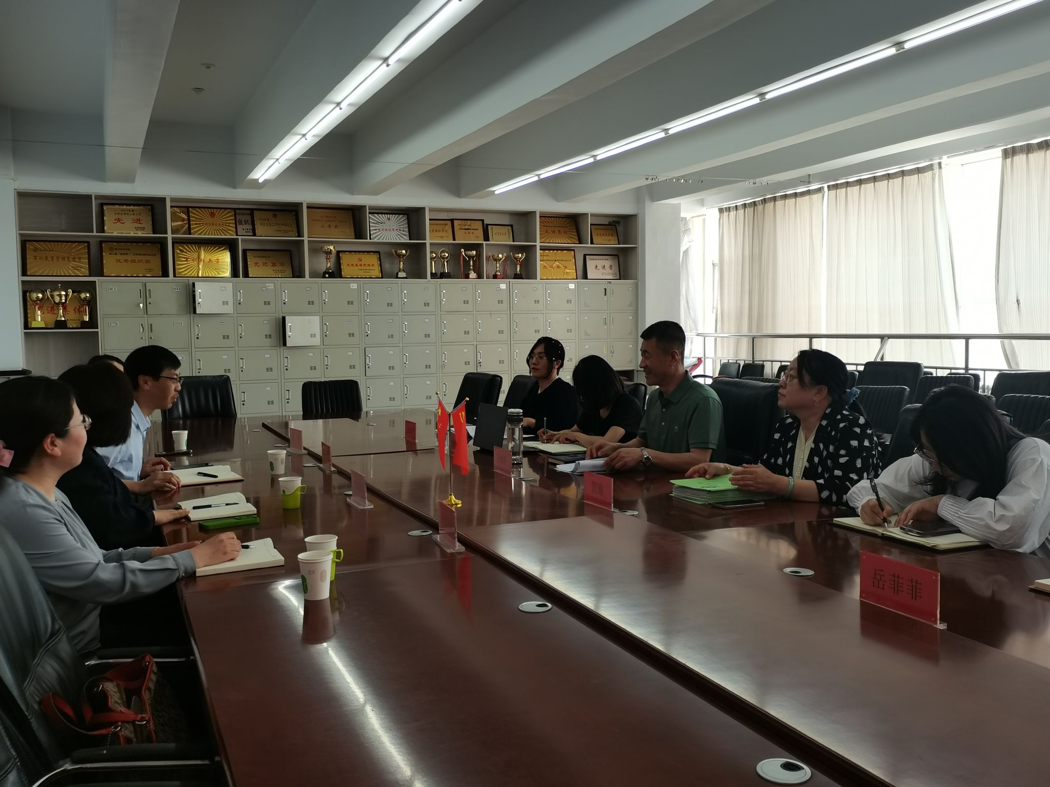 5月 27 日,包头师范学院外国语学院党委书记盖永涛,院长赵阿茹娜带领考察组成员钟豆梅及董雪来beat365正版唯一官方网站外国语学院调研交流。beat365正版唯一官方网站外国语学院党总支书记王世青、英语系主任贺瑜、大学外语教研室主任梁虹、办公室主任岳菲菲 、团学办公室主任王新宇、教学科科长张建芳、办公室副主任刘利珍参加座谈。