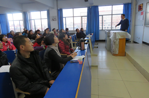 赵澍结合大学英语教材讲解了如何合理设计教学、有效实施教学,并分析了内蒙古地区大学外语教学和教改现状。