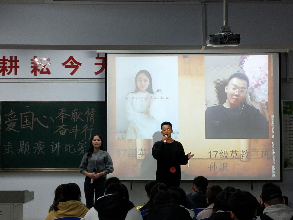 为了弘扬中华民族优秀传统文化,积极营造建国70周年,五.四运动100周年的良好校园文化氛围,挖掘中华优秀传统文化资源,有效发挥文化育人和精神陶冶的作用,我院特举办“爱国心,奉献情,奋斗行”主题演讲比赛。经过初赛激烈比拼,10名选手脱颖而出。2019年3月3日晚,我院在主教楼519举行决赛,出席本次活动的有各学院团总支副书记和学生会主席并担任评委,我院40多名学生也参加了本次活动。比赛分为两个环节,第一环节为定题演讲,第二环节为即兴演讲。10位选手演讲内容贴切主题,演讲风格独具特色,慷慨激昂,最终我院学生卢泽敏、孙旭荣获大赛一等奖,我们的活动也取得了预期效果。