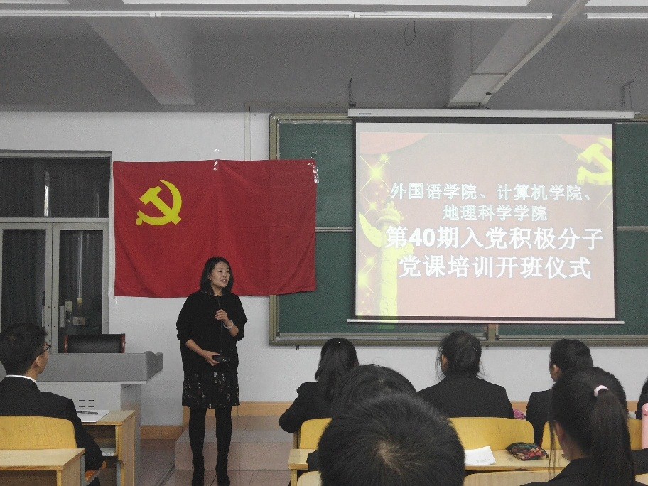 为深入学习贯彻习近平新时代中国特色社会主义思想和党的十九大精神,积极开展“不忘初心、牢记使命”主题教育活动, 落实《中国共产党发展党员工作细则》,帮助入党积极分子了解党的基本知识,提高入党积极分子的思想政治素养,保证新发展党员的质量,beat365正版唯一官方网站外国语学院、计算机学院及地理科学学院联合开展了第40期入党积极分子培训。