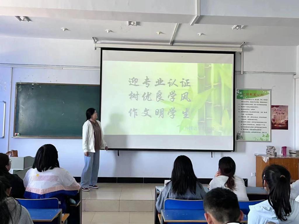 根据学校相关通知要求,为了对学生进行师范专业认证基本知识、日常行为规范、着装打扮、考勤管理、课堂纪律、宿舍纪律、宿舍卫生、班级卫生、文明礼貌等方面进行专题教育,外国语学院各班陆续在六月初开展了以“迎专业认证,树优良学风”为主题的主题班会。在班会中,班主任为同学们讲解了有关师范认证的基本知识,班长带领同学们了解了日常行为规范、着装打扮、卫生等方面的要求。通过此次班会,同学们对师范认证的相关知识有了更加深刻的了解,在日常生活中更加注重自己的言行举止。