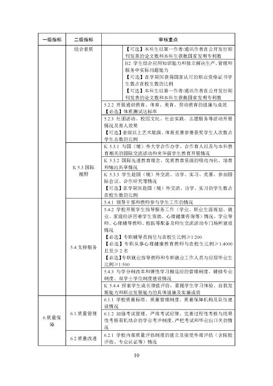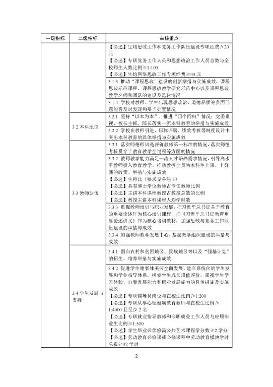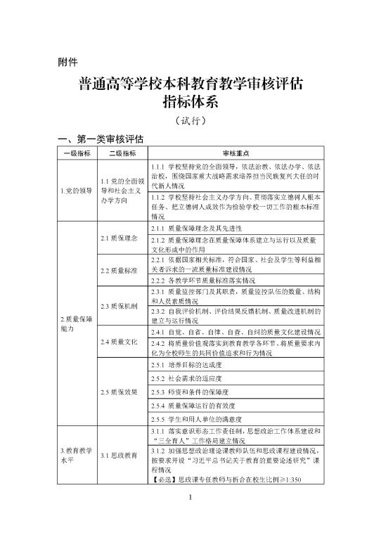 (一)坚持立德树人。把牢社会主义办学方向,构建以立德树人成效为根本标准的评估体系,加强对学校办学方向、育人过程、学生发展、质量保障体系等方面的审核,引导高校构建“三全育人”格局。