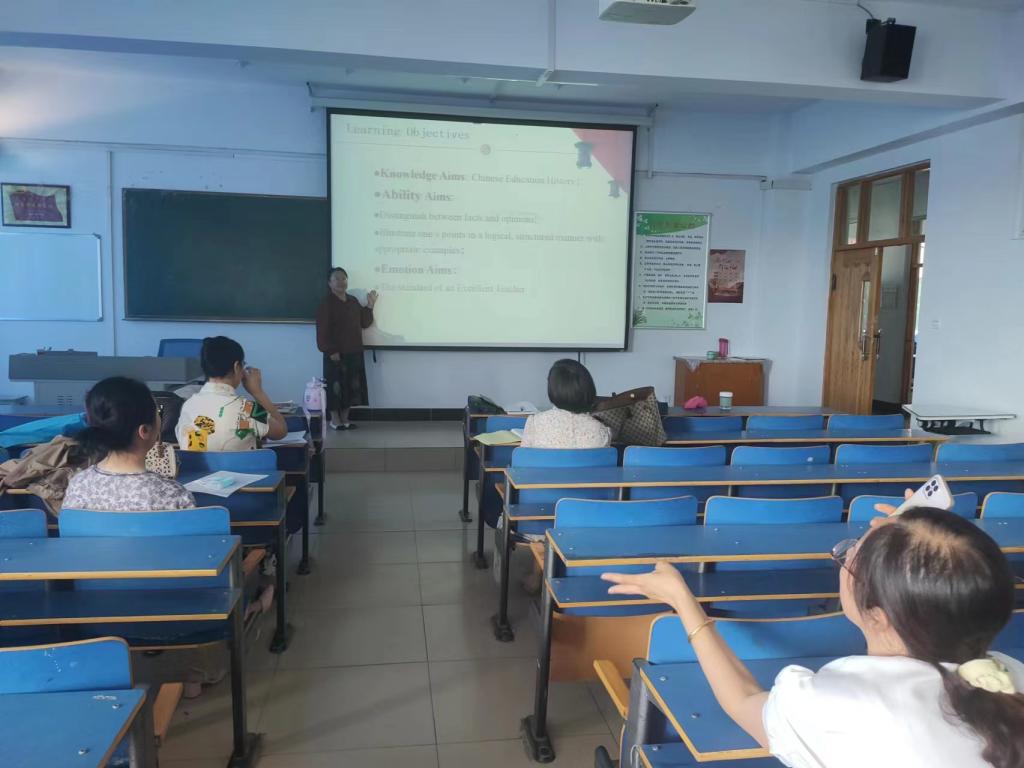 8月16日,贺瑜、梁虹、李一三位老师进行了中国文化概要课程的磨课,三位教师同课异构,各有千秋:贺瑜老师注重听说能力训练,梁虹老师强调知识梳理;李一老师展示国际视野和教育技术,三位老师取长补短,各有收获。丁慧老师讲授了阅读课程,线上线下相结合,将思政育人科学有效地融入专业知识的传授中。到会教师们就阅读课程中存在的困惑进行了有效探讨。