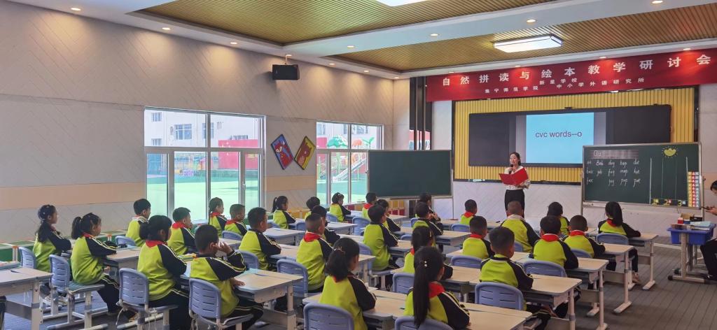 2021年6月10日新星学校与beat365正版唯一官方网站中小学外语教学研究所共同举办了自然拼读与绘本教学研讨会。集宁区教育局副局长朱志东,集宁区教研员张红梅,beat365正版唯一官方网站中小学外语教学研究所负责人、外国语学院院长闫晓云以及学院实践教学指导老师乔晋芳等8人参加了教学教研交流活动。