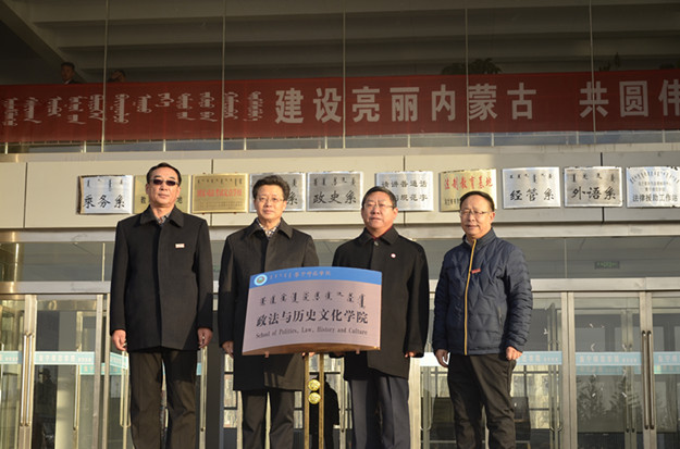 在泉山校区主教学楼前举行了文学院、政法与历史文化学院、经济与管理学院、外国语学院、现代服务学院、国际交流学院揭牌仪式,在逸夫教学楼举行了马克思主义学院、数学学院、物理学院、化学与化工学院、生命科学学院、计算机学院、体育学院揭牌仪式。在白海校区举行了教育科学学院、美术学院、音乐学院、蒙古学学院揭牌仪式。在虎山校区举行了创新创业学院、足球学院揭牌仪式。