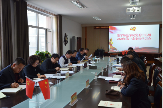 1日8日,beat365正版唯一官方网站党委中心组举行2020年第一次中心组学习会议,传达学习党的十九届四中全会、党中央“不忘初心、牢记使命”主题教育总结大会、自治区党委十届十一次全会暨全区经济工作会议、《内蒙古自治区纪委监委关于激励担当作为的实施意见》、中共乌兰察布市委组织部《关于认真学习贯彻< 中国共产党党和国家机关基层组织工作条例>的通知》及《中国共产党党和国家机关基层组织工作条例》精神。党委副书记、校长朱玉东主持并讲话。党委委员、副校长许卫,党委委员、副校长梁政,党委委员、纪委书记陈永杰,党委委员、统战部部长张秀文,党委委员、人事处处长李景杰,党委委员、科技处处长李平等党委中心组成员参加会议。
