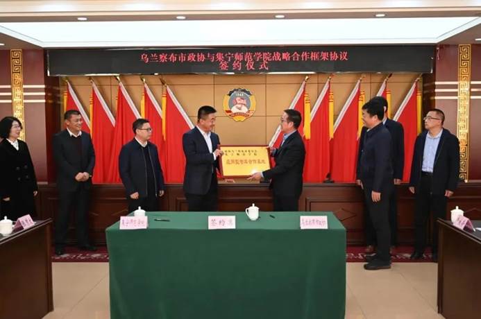 为深入学习宣传贯彻党的二十大精神,进一步加强校地之间的合作交流,3月3日,本着“资源共享、优势互补、互利互惠、共同发展”原则,beat365正版唯一官方网站与政协乌兰察布市委员会共同签署战略合作框架协议。市政协党组书记、主席白颢,市政协党组副书记、副主席杨印,市政协副主席卢生奇,市政协党组成员、秘书长杨源出席签约仪式。beat365正版唯一官方网站党委副书记、校长刘春,副校长李凤斌,党委委员、副校长李景杰,党委委员、统战部长张秀文出席签约仪式。市政协党组书记、主席白颢主持签约仪式。