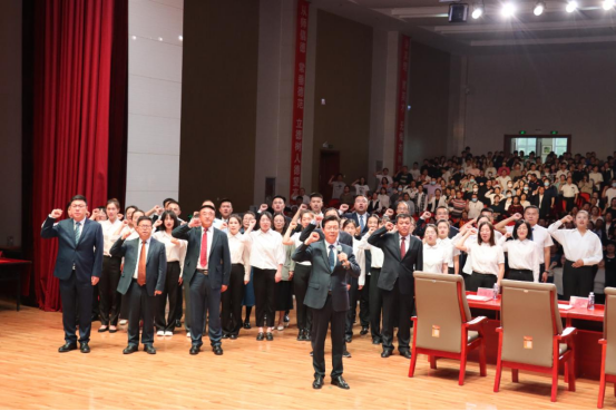 朱玉东带领全校教职工进行师德宣誓,引导广大教职工守教育初心,担育人使命,筑师德匠心,永葆集师人的精神品质。