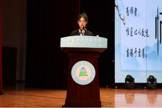 学生代表文学与新闻传播学院杨丛睿代表全校学生发言,表达了对老师的感恩之情和对学校的美好祝福。